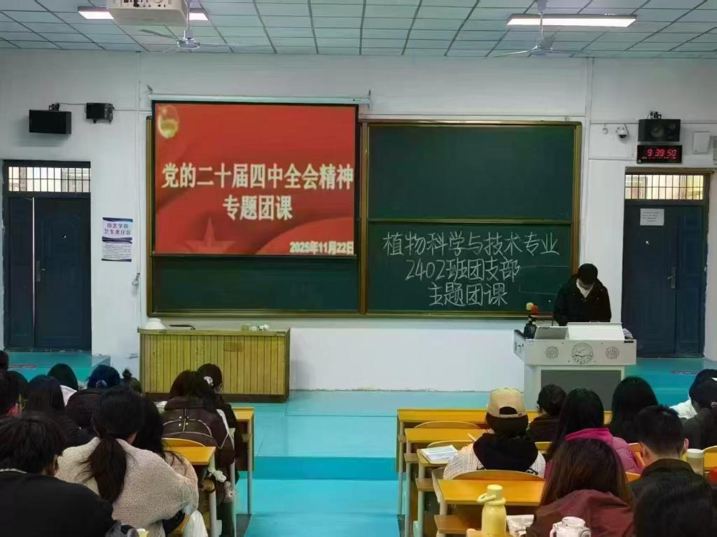 本次专题团课学习活动严格依托 “三会两制一课” 制度,深入引导全院团员青年将思想和行动统一到全会决策部署上来学院团委结合农科专业特色制定实施方案,确保学习活动有序推进切实把学习成果转化为服务农业农村现代化、助力乡村全面振兴的实际行动各团支部积极响应、精心组织,采用 “线上 + 线下” 相结合的方式,创新推出多样化学习形式,推动全会精神入脑入心线下以教室为阵地,通过青春大讲堂专家讲座、各级团干部领学党的二十届四中全会公报原文、PPT 解析、主题宣讲及交流互动研讨凝聚共识;线上通过学习通、腾讯会议等平台开展 “云端团课微学习”,营造自主学习氛围。